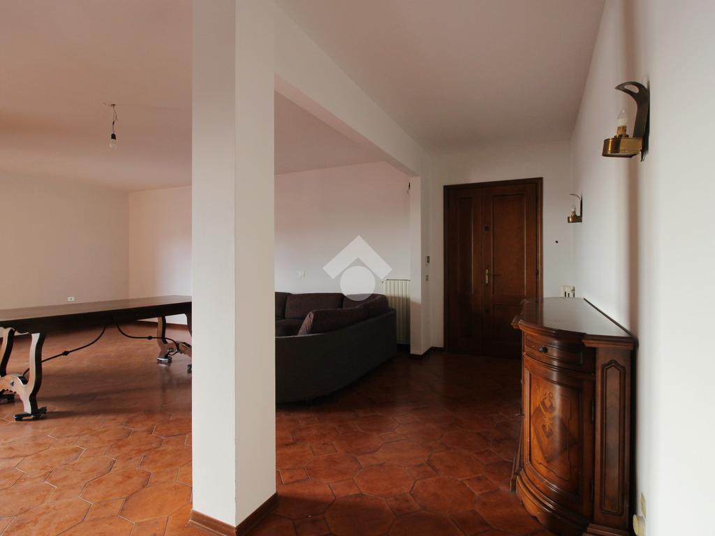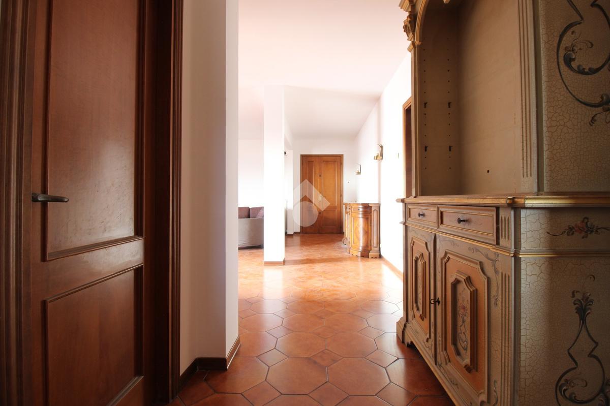 L'ingresso dell'immobile ci conduce direttamente al salone doppio dove a dominare la scena è la luce naturale proveniente dalle doppie porte finestre che ci conducono al terrazzo semi-abitabile che affaccia sul lato del contesto condominiale. Completa la zona giorno la cucina doppia con ripostiglio e accesso al terrazzo tergale, utilizzabile come lavanderia.