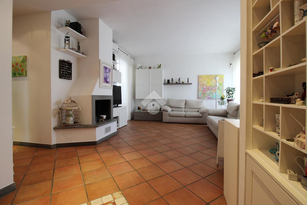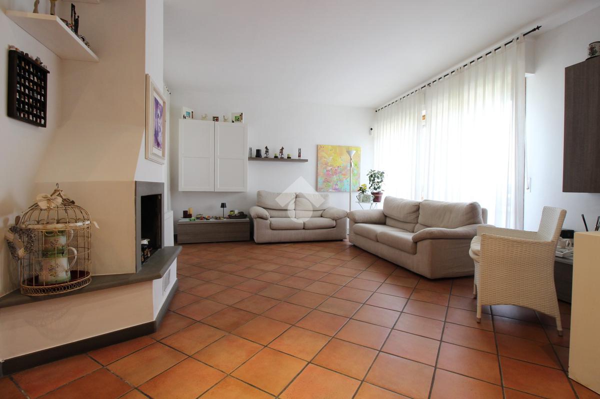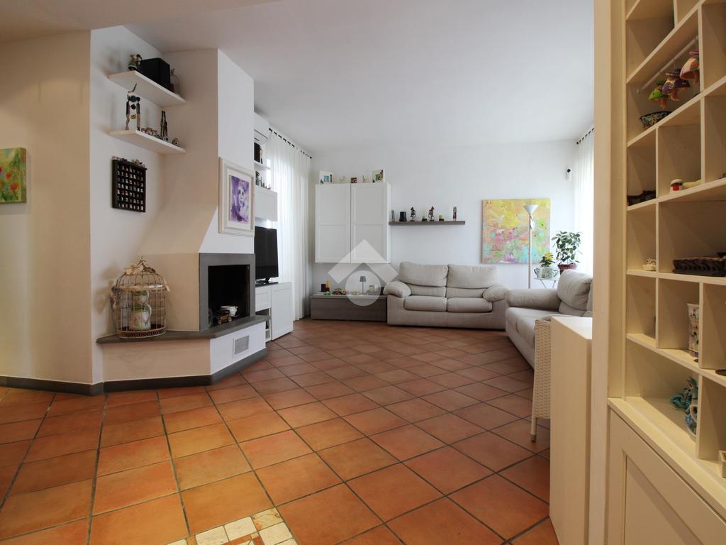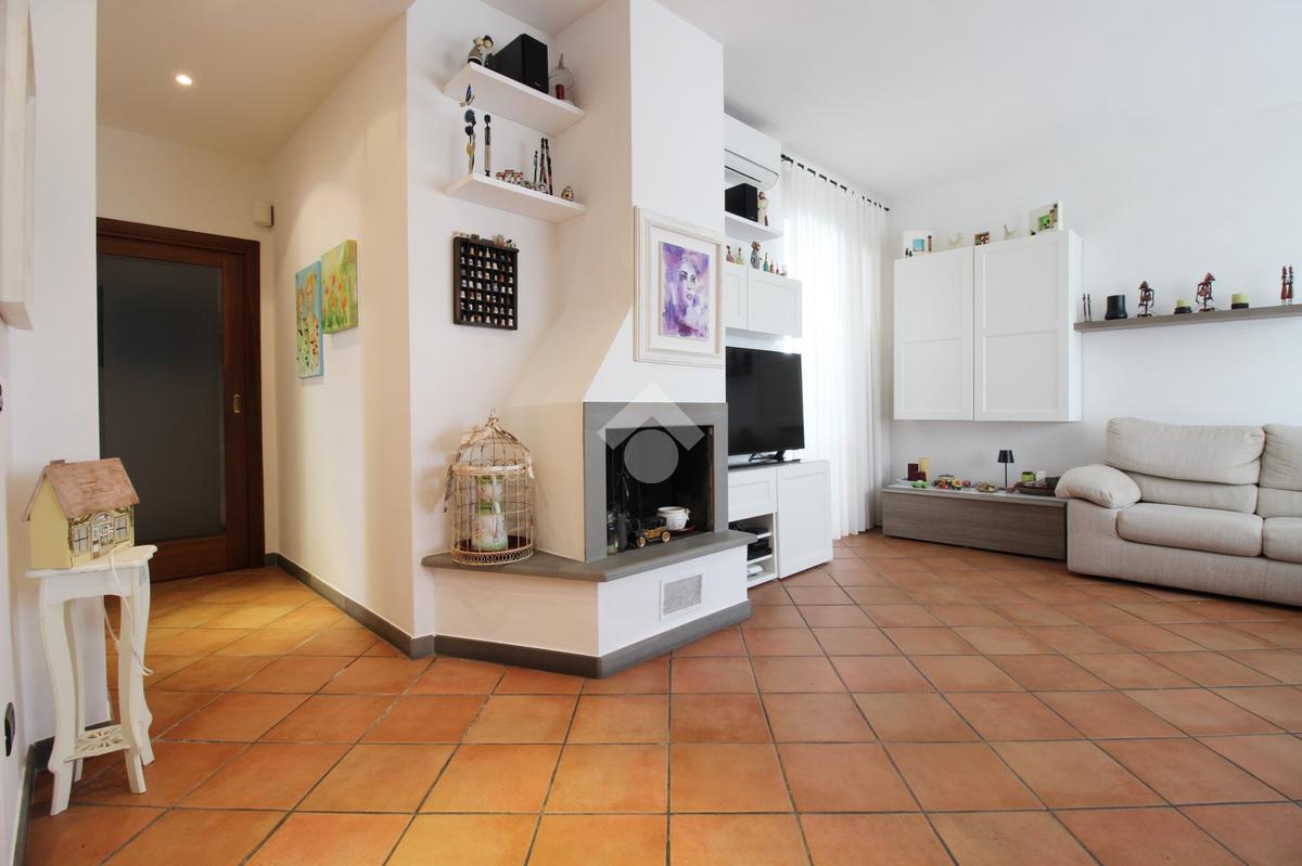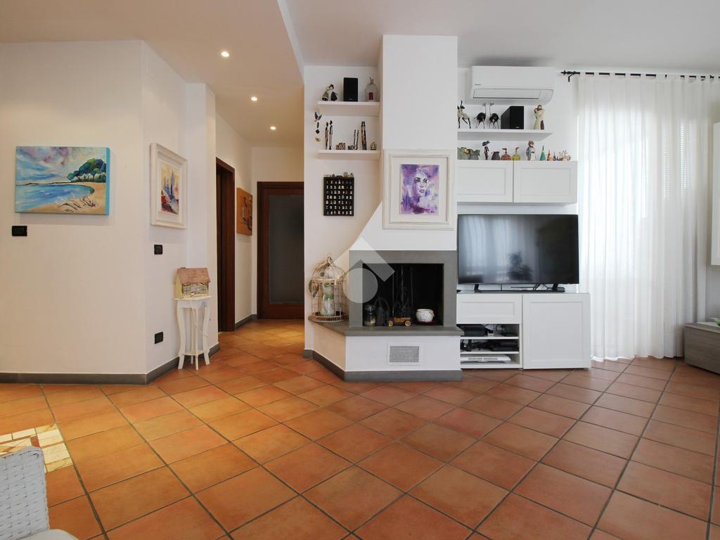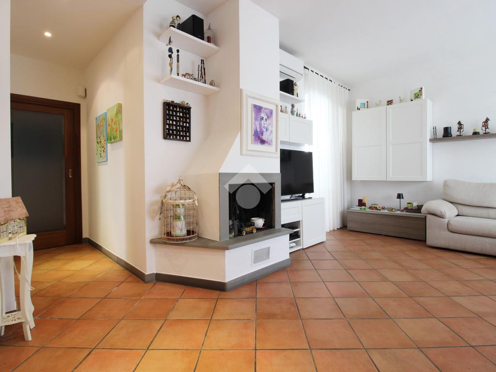 L’immobile è composto da ingresso, ampio soggiorno con camino, cucina abitabile, tre camere da letto di cui due matrimoniali e una media, doppi servizi entrambi con doccia di cui uno finestrato e ripostiglio.