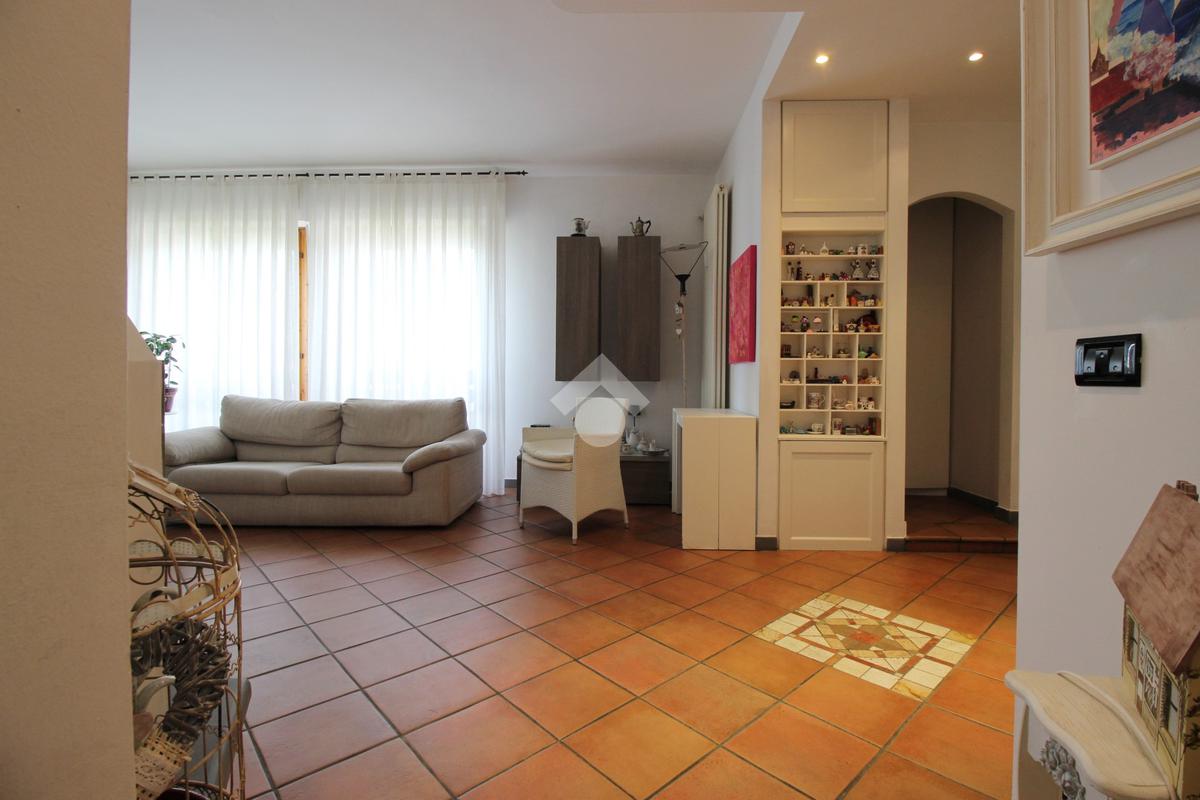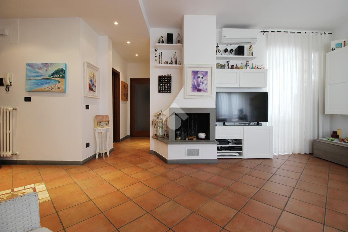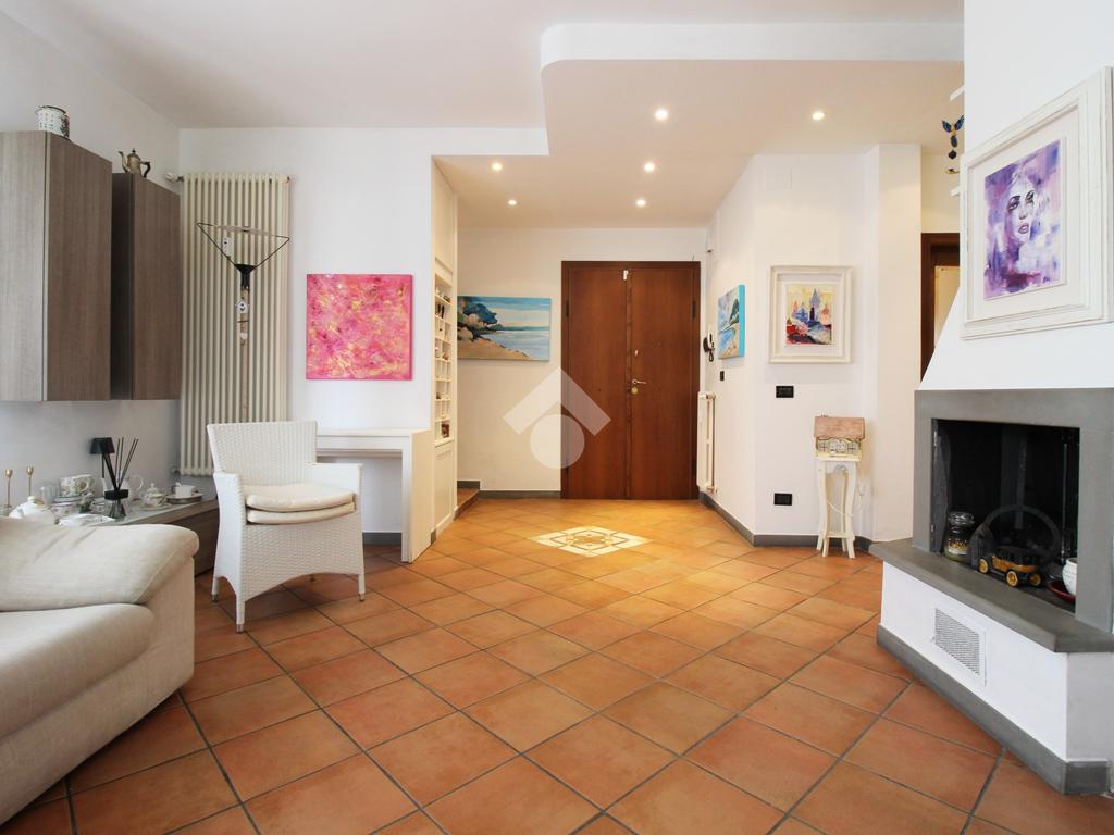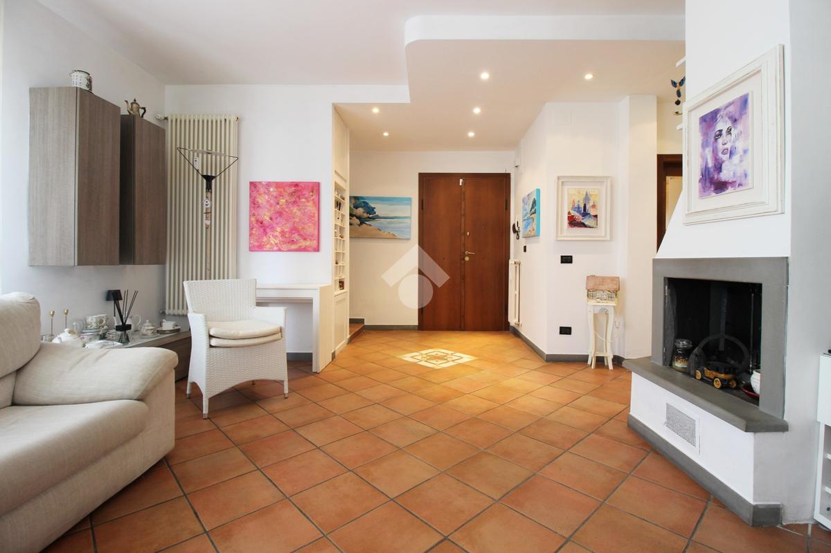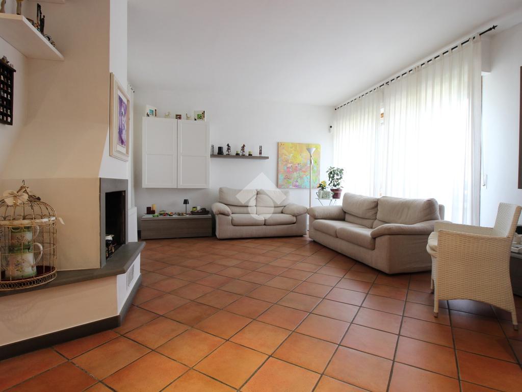 L’immobile è composto da ingresso, ampio soggiorno con camino, cucina abitabile, tre camere da letto di cui due matrimoniali e una media, doppi servizi entrambi con doccia di cui uno finestrato e ripostiglio.